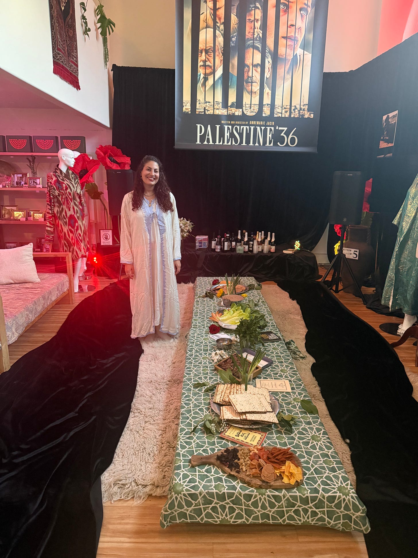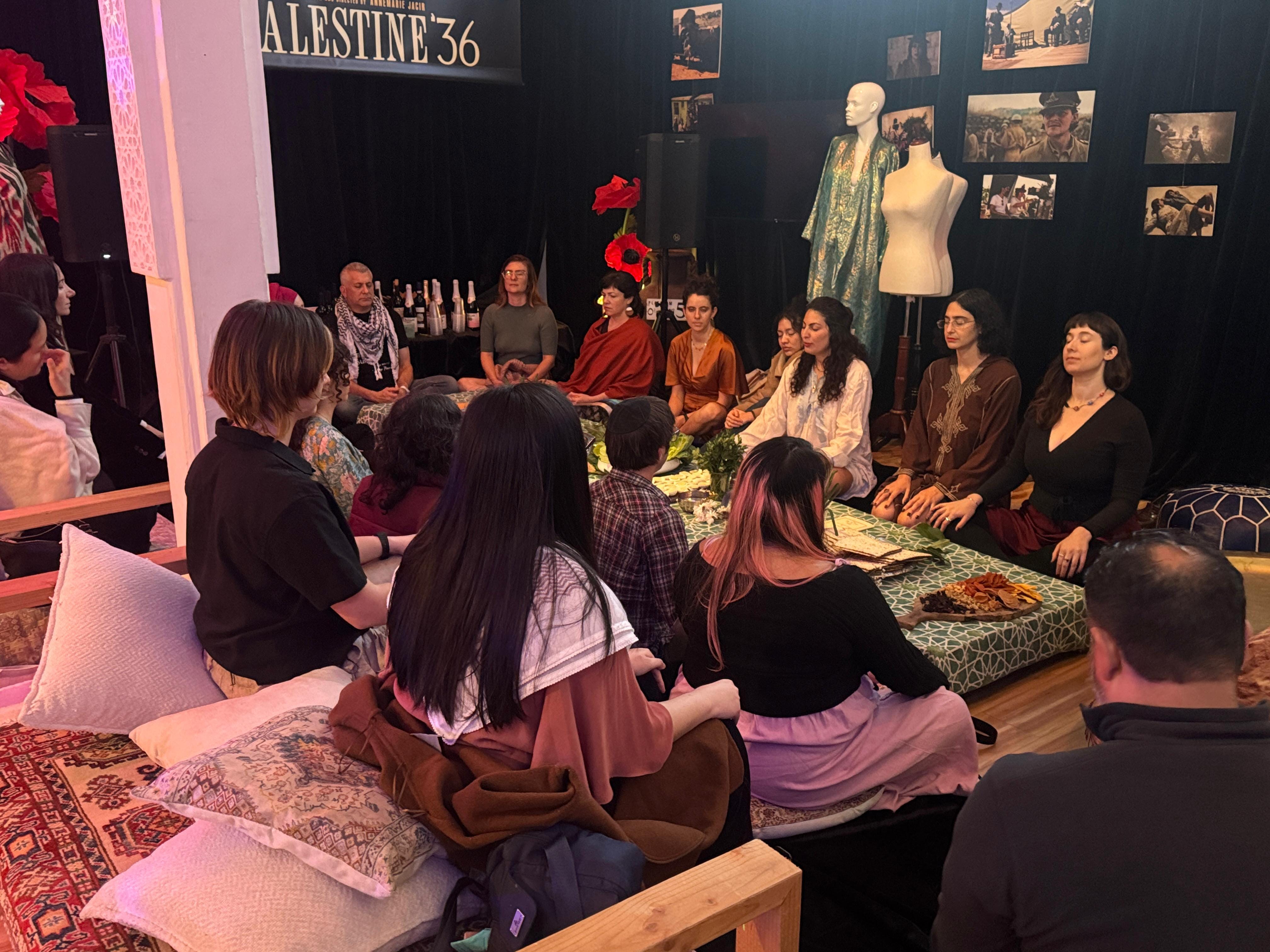 In our Seder, we sat inside a living archive of 1930s Palestine—an immersive exhibit by Watermelon Pictures, rooted in the story of Palestine ‘36, a powerful film that honors a legacy of resistance, resilience, and collective struggle. It highlights the longest anti-colonial uprising in the history of the British Empire.